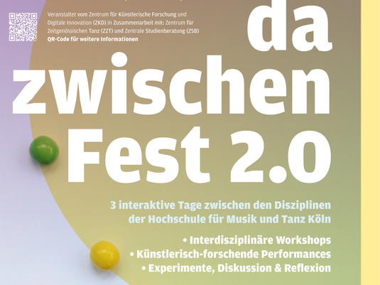 Wir freuen uns auf Eure Teilnahme beim »dazwischenFest«, das die kreativen Räume zwischen den an der Hochschule vertretenen künstlerischen und wissenschaftlichen Disziplinen feiert und fördert. Das Festival ergänzt andere Semestereröffnungsveranstaltungen um Workshops und Präsentationen, die Grenzen überbrücken sollen zwischen Tanz und Musik; Kunst und Forschung; Tradition und Innovation; akustischen Instrumenten und digitalem Musizieren. Diese stehen sowohl neuen als auch höhersemestrigen Studierenden ebenso wie Lehrenden offen und bieten so Gelegenheiten zur Zusammenarbeit und zum fachübergreifenden Austausch.